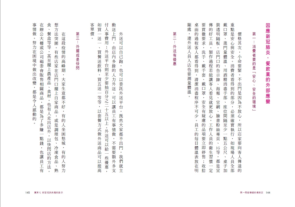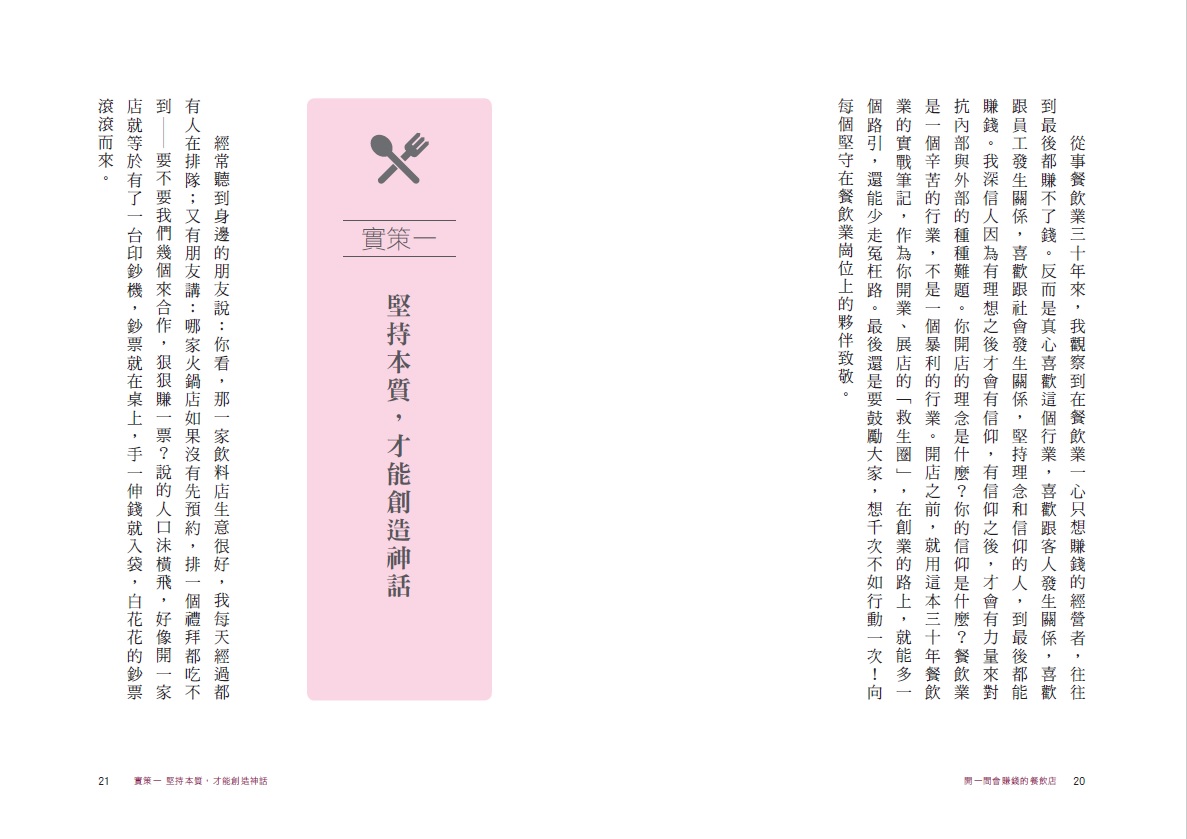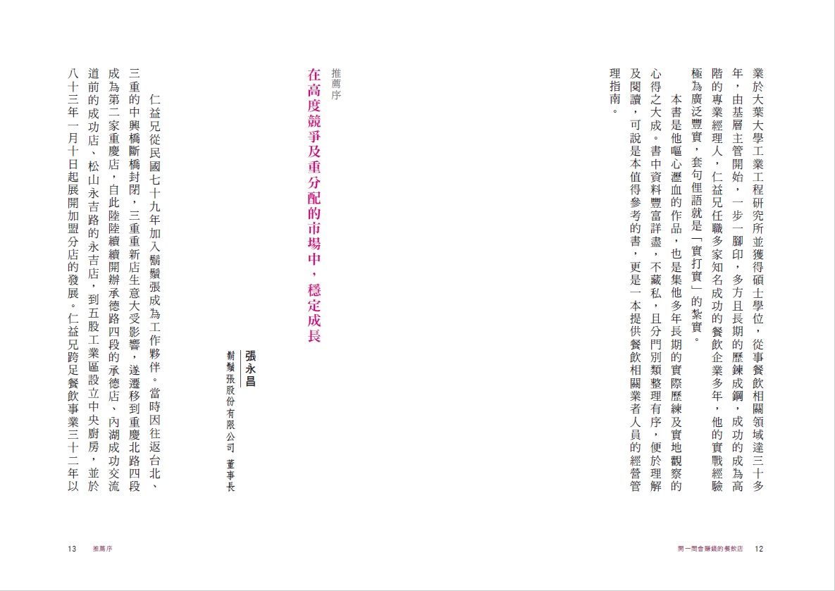 「常常聽到有人說:『餐飲業成本低,淨利又高,超級好賺。』這根本是大錯特錯的想法!餐飲背後有太多的危險、成本,是一般人看不見的。這本書寫出了餐飲業隱藏的真相,還有正確的經營方式,對於想當老闆的人很有幫助。」——王繁捷,貝克街負責人