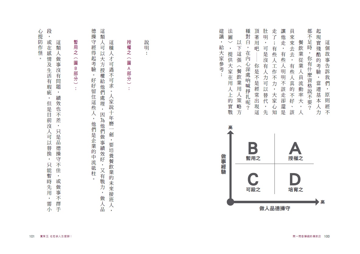 本書作者林仁益總經理,曾於鬍鬚張、摩斯漢堡……等大型連鎖企業擔任高階經理人,擁有30年連鎖加盟及海外拓點展店的實戰經驗。在本書中,毫不藏私的將他的管理經驗(成本結構分析、用人策略,行銷創意,危機處理……)與餐飲業不為人知的潛規則詳實揭露,並且鉅細靡遺的從開一間小店到加盟連鎖各階段應注意的事項,整理為9個忠告、10個對策。特別是當餐飲業者在面對景氣不好、競爭者後來居上而導致業績下滑時,作者也詳列了9個應對的要點與觀念,實實在在地幫助經營者力挽狂瀾,創造新猷。而作者在本書所列出的各項數據,都是累積30年來的實戰成果,因為他說,只要是用同樣的人、同樣的方法、賣同樣的商品、開同樣的店,答案都是一樣的,因為,這是「科學的定律」,也是資深餐飲顧問最不藏私的「開店方程式」。